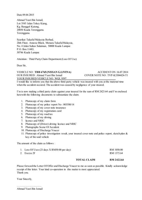 Contoh Surat Rasmi Claim Insurans Surat Oo Otosection